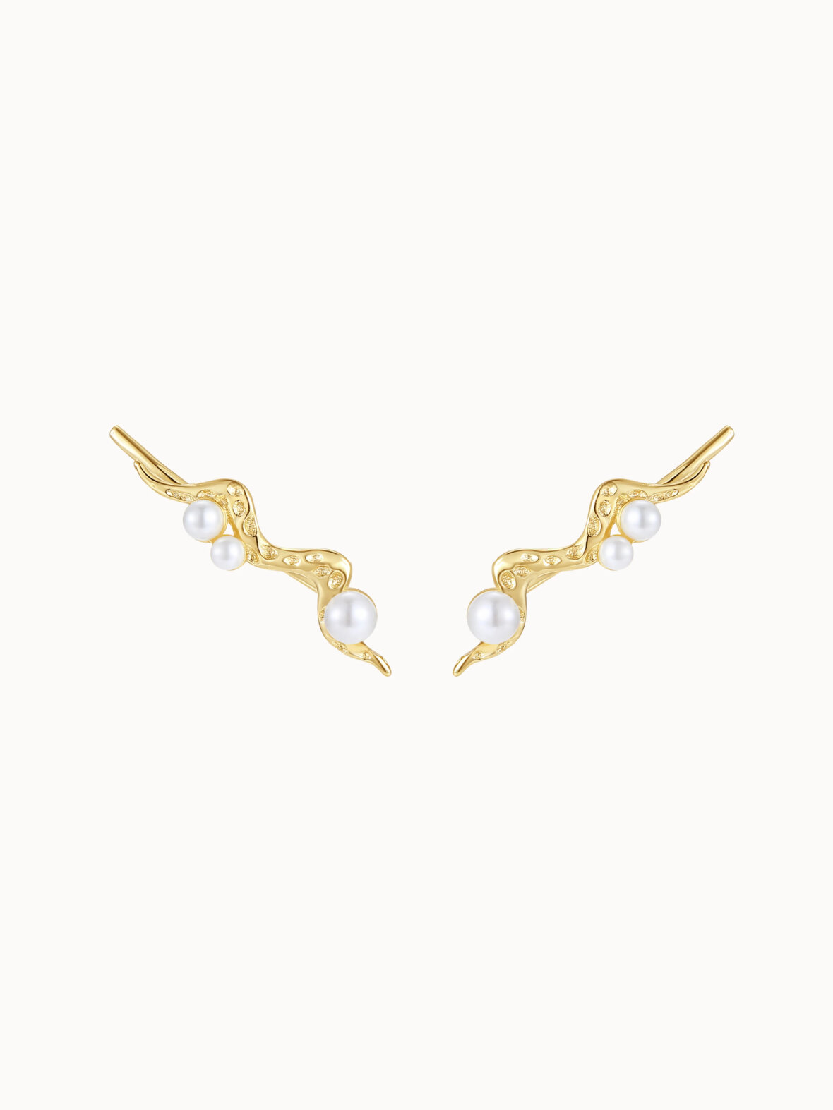 Zephyr Ear Climber har en bølgende, struktureret form prydet med små perler, der følger ørets kurve. Designet skaber et dynamisk og elegant udtryk – en iøjnefaldende detalje fra Siren kollektionen.