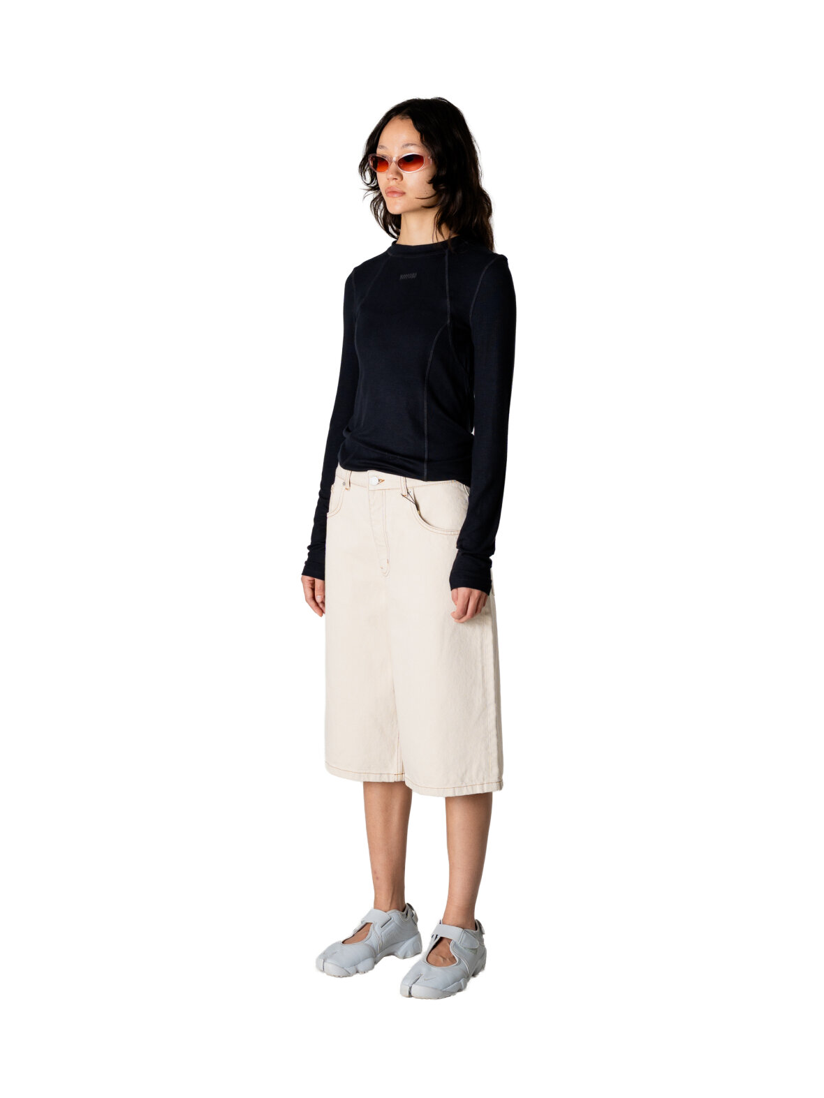 Langærmet T-shirt med sømdetaljer, diskret logo og et blødt, strækbart stof.