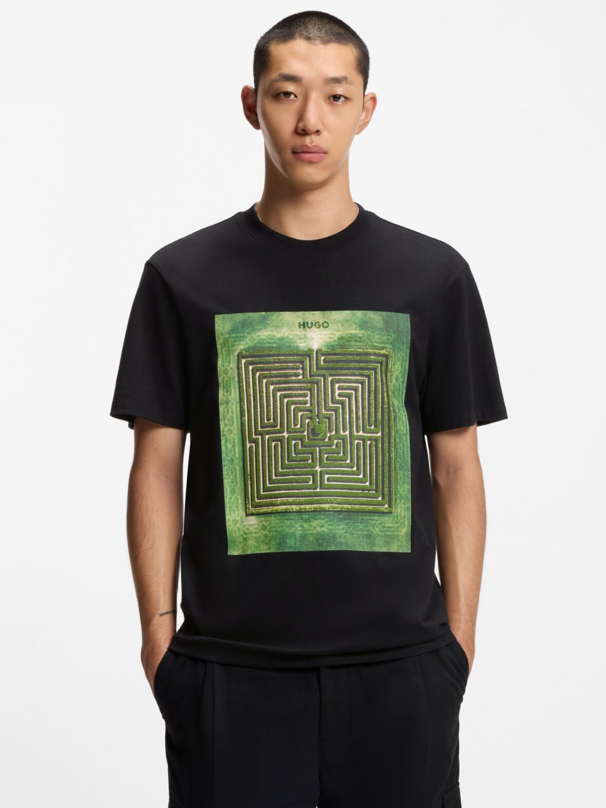 HUGO Cotton-jersey T-shirt with maze print