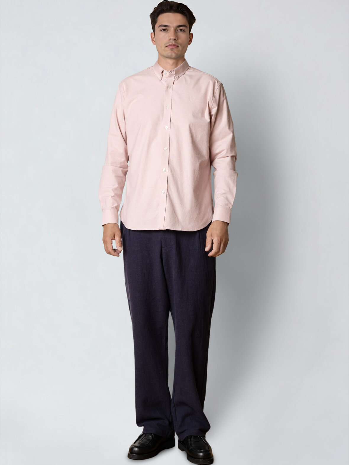 Et must i enhver mands garderobe: den klassiske oxfordskjorte. Lavet af blødt bomuldsstrækstof for optimal komfort. Den har et lille logo på brystet, skræddersyet pasform, knapkrave og stribet kontraststof inde i kraven.