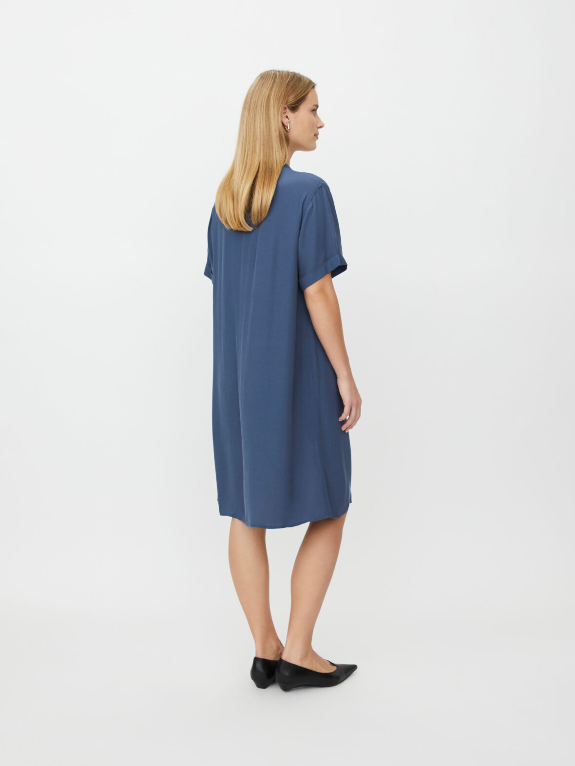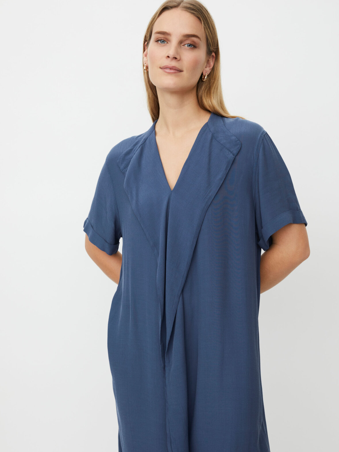 Blød, elegant og tidløs – denne viskosekjole er en ægte sæsonfavorit. Kjolen er syet i crepet viskose, der falder blødt ned over kroppen og tilfører ekstra tekstur til dit look. Den fine flæsedetalje foran giver et strejf af feminin elegance og masser af liv og bevægelse. Brug kjolen med sneakers til hverdag eller tilføj smykker og hæle for et mere festligt udtryk. En uundværlig style, du vil vende tilbage til igen og igen.