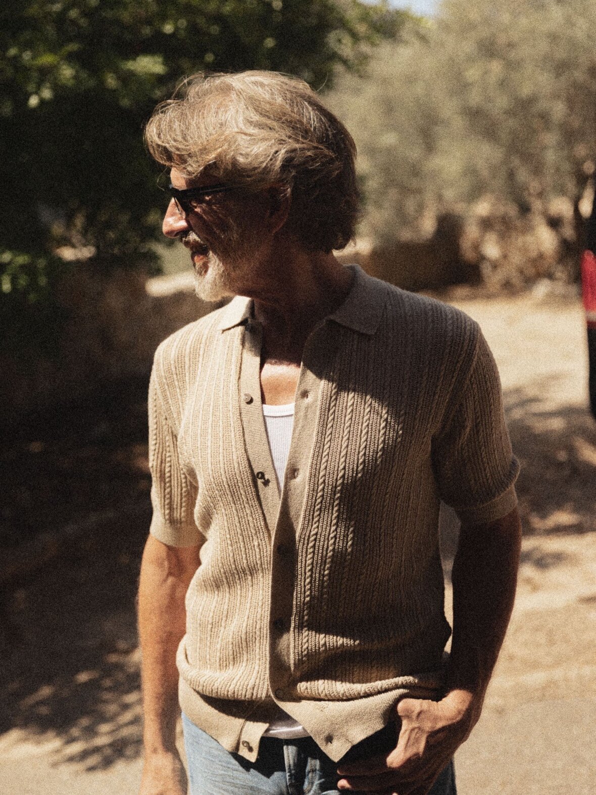 Ideel til varme dage. Denne strikkede polo har en klassisk krave, korte ærmer og knaplukning. Med sin regular pasform forener den et afslappet udtryk med et strejf af struktur. Det enkle design gør den nem at style og til et oplagt valg til forårets friske looks.