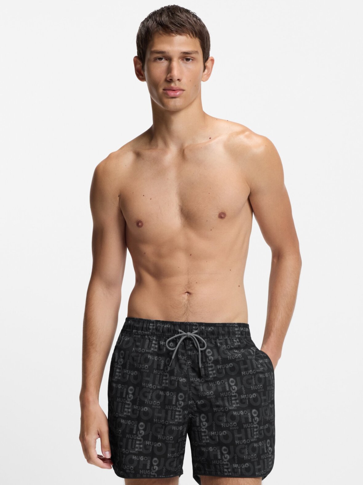 Giv din sommerkollektion et statement-præg med trykket på disse naturligt hurtigttørrende HUGO Menswear badeshorts. Kontrastpiping på den afrundede kant. Dette produkt indeholder mindst 80% bedre råmaterialer. Dette produkt er delvist fremstillet af genbrugt polyamid.