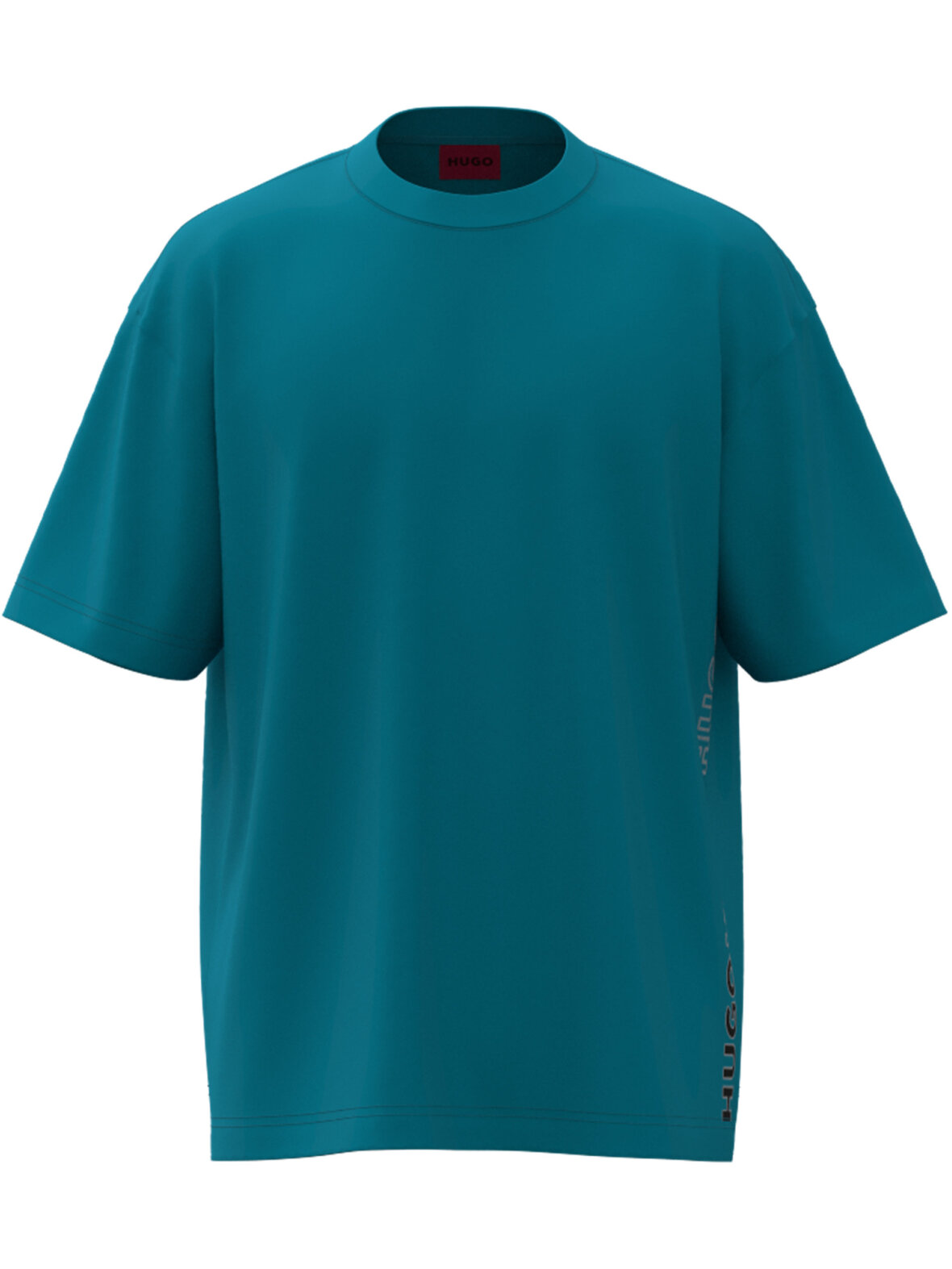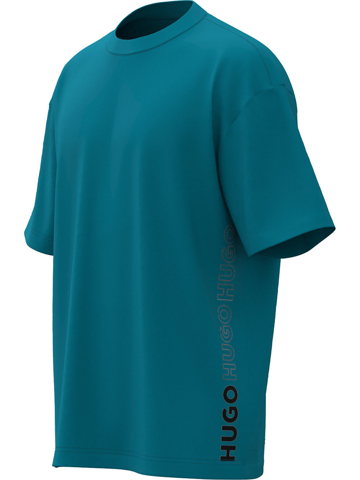 Denne HUGO Menswear T-shirt er fremstillet i åndbart bomuld og er ideel til strandbrug. Trykt med gentagne logoer i sidesømmen. Skåret i en oversized pasform.