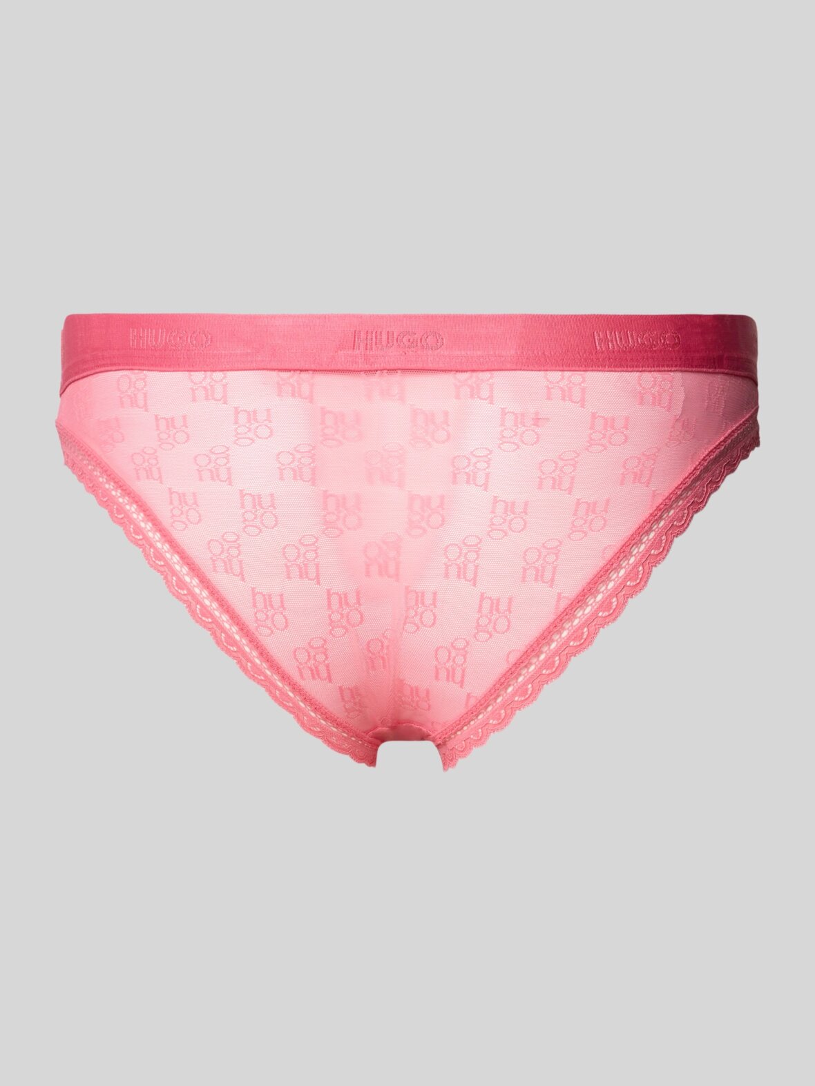 Løft dine basics med den detaljerede logoblonde på disse HUGO Womenswear-trusser med stretch for komfort. Logo i taljen. Transparente blondekanter.