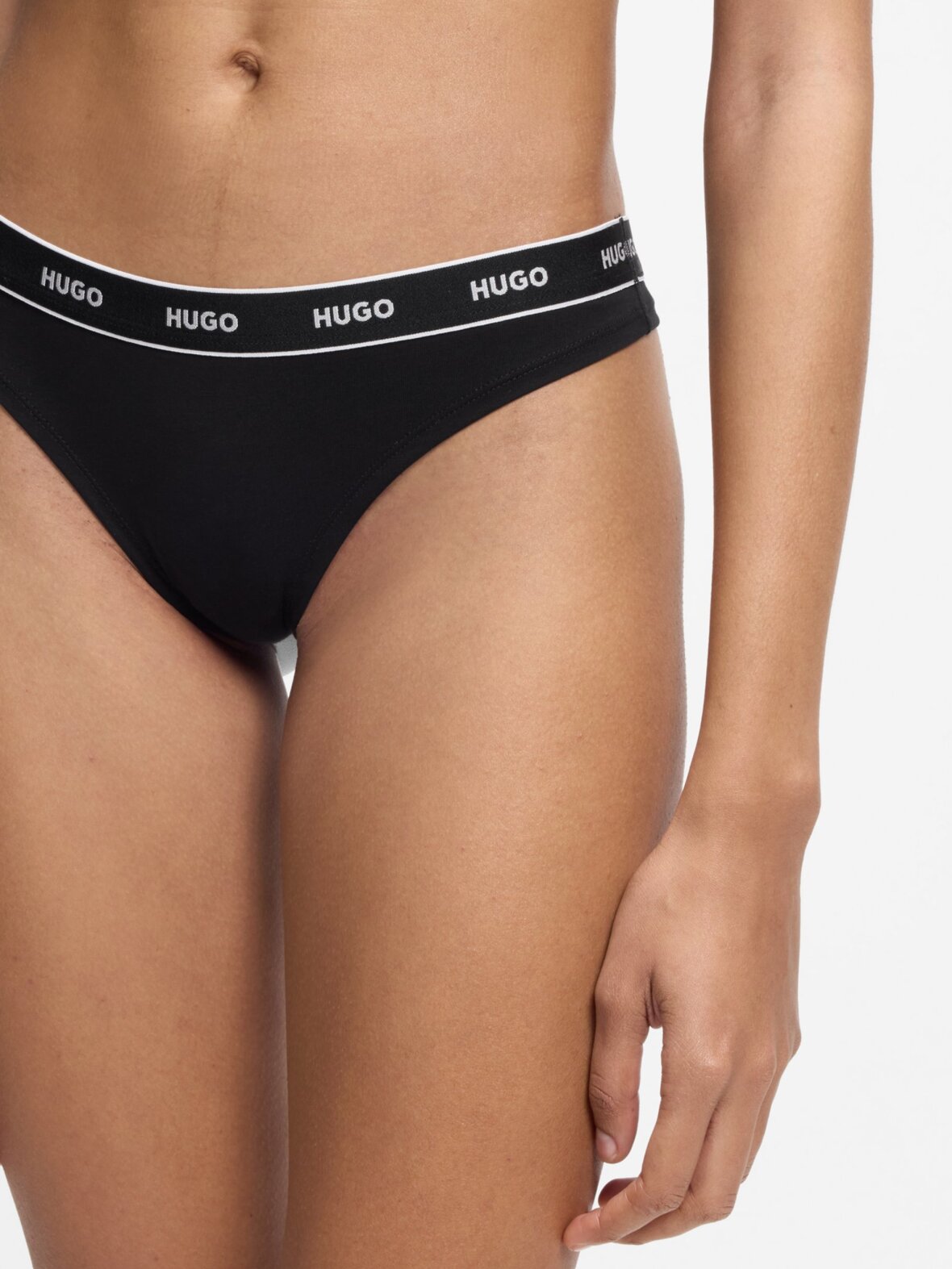 HUGO Women Three-pack of stretch-cotton thongs with logo details