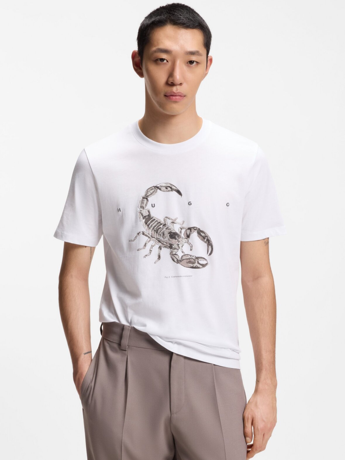 Giv et afslappet outfit energi med det distancerede logo og statement-kunstværk på denne HUGO Menswear T-shirt i regular fit. Fremstillet i åndbar bomuld.